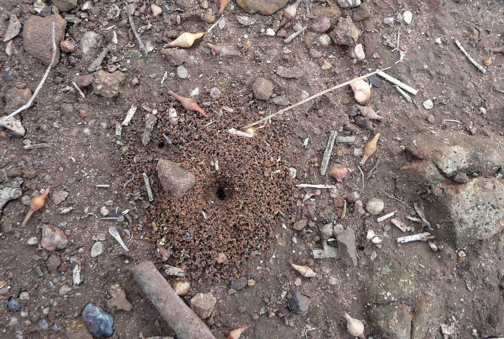 This track is seldom used and the occasional Drooping Cassinia and acacia seedlings have sprouted in the middle of the path. Chocolate lilies briefly bloom amongst the Stipa and Wallaby grasses to our left and I smell the sweet pale blossom of Black Wattles all around. The texture of the track is reminiscent of a hundred bush tracks I have wandered along in my lifetime; a mixture of reddish soil and gravel with bedrock occasionally poking through; Meat ants are busy living their lives here.