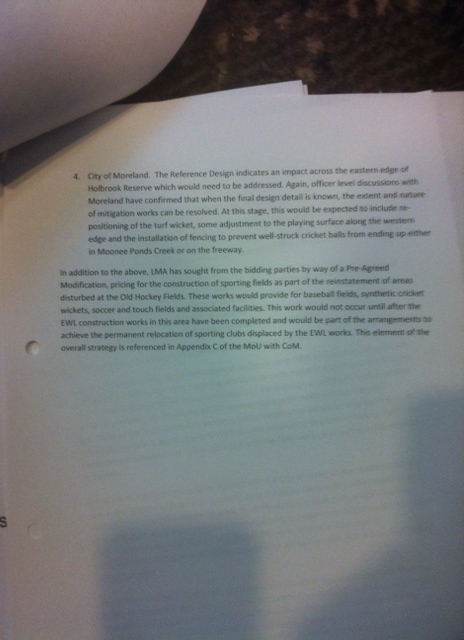 We will confirm the details of the MOU as soon as possible: but it possibly includes Poplar Oval becoming a turf wicket oval and Flemington Oval to be upgraded with a fence on Flemington Road.